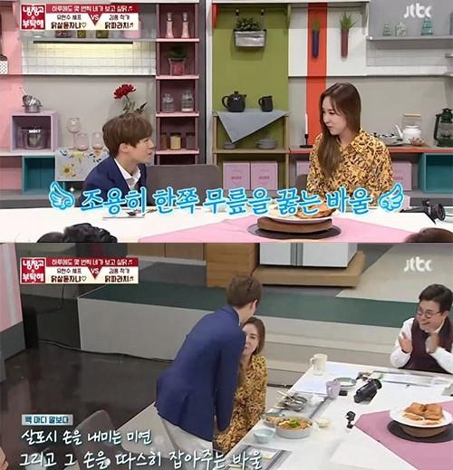 특히 이날 스튜디오에서는 간미연을 위한 예비 신랑 황바울의 프러포즈 대작전이 펼쳐졌다. 유현수 셰프, 김풍작가와 함께 요리 속에 캡슐을 넣어둔 황바울은 요리 대결 전 깜짝 등장해 세상에서 단 하나뿐인 이색 프러포즈를 펼쳐 간미연에게 감동을 안겼다. 캡슐 하나에는 편지가 들어있었고 또 다른 캡슐에는 반지가 들어있었다.