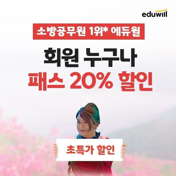 [시민일보 = 여영준 기자]종합교육기업 에듀윌(대표 박명규) 소방이 소방공무원 패스를 20% 할인해주는 초특가 이벤트를 7일까지 진행한다.