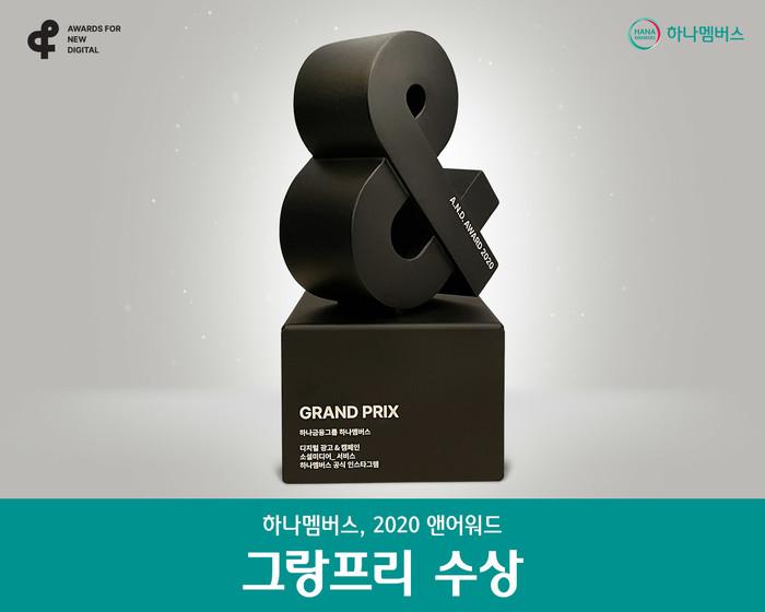 [시민일보 = 여영준 기자] 하나금융그룹은 그룹 통합 멤버십 프로그램인 '하나멤버스'가 '2020 앤어워드(Awards For New Digital Award)' 디지털 광고&캠페인 부문 중 소셜미디어 서비스 분야에서 ‘그랑프리’를 수상했다고 4일 밝혔다.