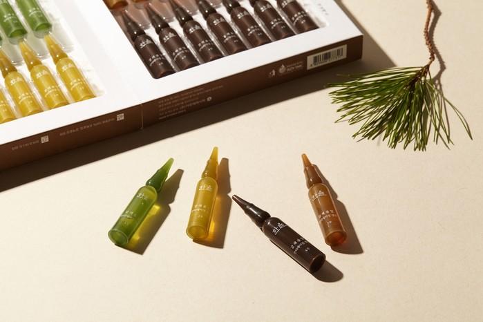 솔잎은 정화·수분 효능을 머금고 초록으로 돋아난 뒤, 갈색으로 변화하면서 탄력, 항산화 효능을 응축한다.