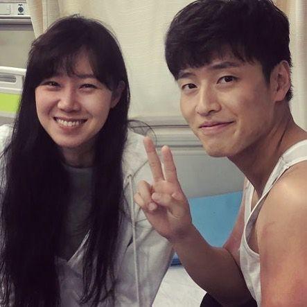 공개된 사진에는 부스스한 머리에 후드집업을 입고 환하게 미소 짓고 있는 공효진과 함께 러닝셔츠 차림을 하고 미소 짓는 강하늘의 모습이 담겨있다.