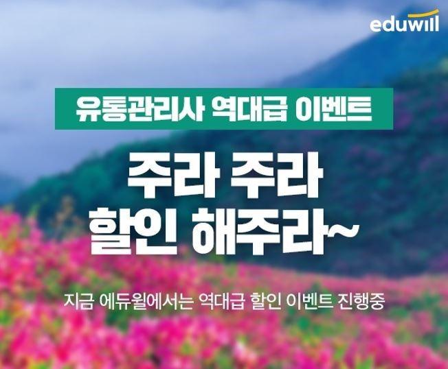 [시민일보 = 여영준 기자] 종합교육기업 에듀윌(대표 박명규)은 유통관리사 자격증 강의를 보다 경제적으로 수강할 수 있는 할인 이벤트를 마련했다고 15일 밝혔다.
