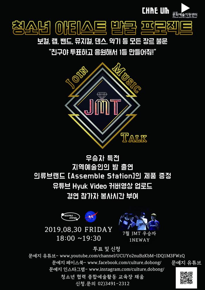 JMT은 구가 매달 마지막주 금요일 오후 6시 청소년들의 자율적인 문화예술 활동을 지원하기 위해 개최하는 공연이다.