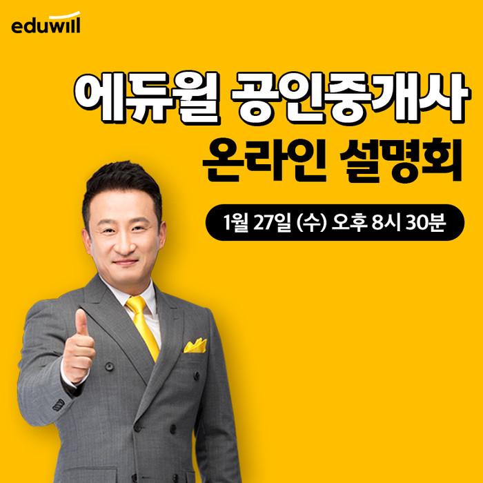 [시민일보 = 여영준 기자] 종합교육기업 에듀윌(대표 박명규) 공인중개사는 오는 27일 오후 8시30분 코로나19 예방을 위해 ‘2021 공인중개사 합격전략 온라인 설명회’를 유튜브에서 생방송으로 개최한다.