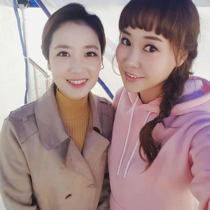 공개된 사진 속 황은정은 활짝 웃으며 기애란 아나운서와 카메라를 쳐다보고 있는 모습이 담겨 있다.