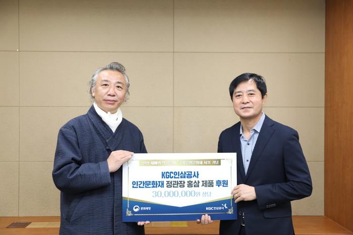 공사는 최근 서울본사에서 문화재청에 등록돼 있는 인간문화재 206인에게 '정관장 홍삼달임액'을 전달했다고 1일 밝혔다.