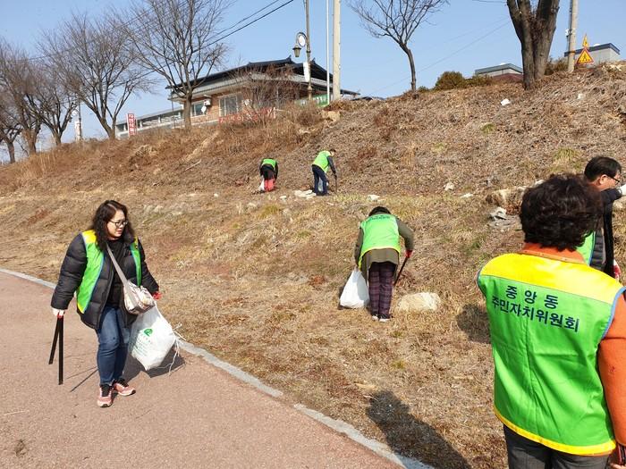 경기 여주시 중앙동주민자치위원회가 최근 지역내 환경정화를 위해 청소봉사활동을 펼쳤다. 이날 총 23명의 자치위원들은 하동과 소양천변 일대에서 쓰레기 300리터가량을 수거했다. 사진은 위원들이 하천변에서 쓰레기를 수거하는 모습. (사진제공=여주시청)