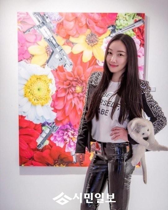 화려한 작품을 배경으로 블랙 앤 화이트 콘셉트의 의상으로 시크미를 더한 낸시랭의 모습이 감탄을 자아낸다.