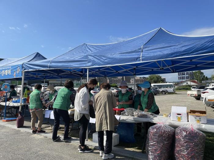 경기 양평군 옥천면새마을회는 최근 나눔 장터 행사를 개최했다. 행사에서는 지역 친환경 농산물을 비롯해 기부받은 음식·의류·신발 등을 판매해 나눔과 이웃돕기의 의미를 되새겼으며 탄소 중립 캠페인도 전개했다. 사진은 나눔 장터 행사가 진행되고 있는 모습. (사진제공=양평군청)
