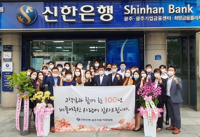 신한은행은 2017년 개점 120주년을 맞은 광교영업부를 포함해 수원금융센터, 대전역금융센터, 부산역지점, 안동지점, 천안지점, 경주금융센터 등 개점 100년이 넘은 영업점이 12개 있으며 광주지점이 열 세 번째로 개점 100년을 맞았다.