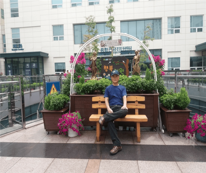 | ▲ 김성태 수료생이 병원내부에 있는 화단에서 기념사진을 찍고 있다. (사진제공=남부기술교육원) |