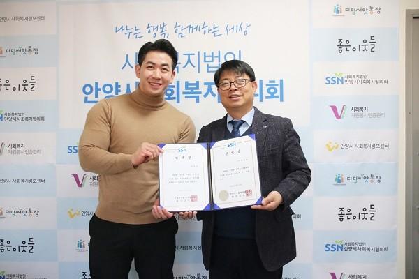 | 사진=왼쪽 성원글로벌 심승보 대표이사, 오른쪽 안양시사회복지협의회 김재훈 회장 |
