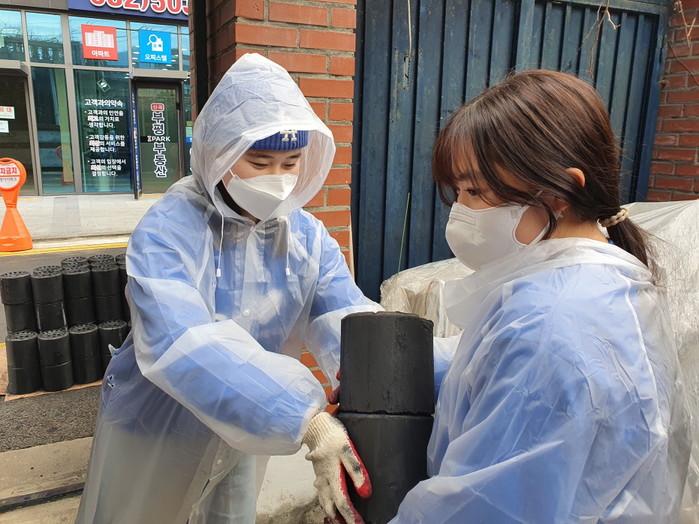 이날 봉사단원들은 ‘사랑의 연탄 서울경기인천본부’에 연탄 400장 후원금을 지급, 이날 오전에 비대면으로 단체를 통해 봉사 유의사항, 연탄 쌓는 법 등의 행동 방침을 수령했다.