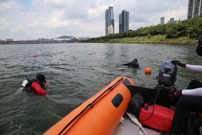 성동소방서는 최근 한강 뚝섬유원지 일대에서 유사시 신속하고 체계적인 긴급구조 활동을 통해 시민의 귀중한 생명과 재산을 보호하고자 '구조대원 특별구조훈련'을 실시했다. 중점 훈련 내용은 수난사고 상황을 가정한 구조훈련 등이다. 사진은 이날 구조훈련이 진행되고 있는 모습. (사진제공=성동구청)