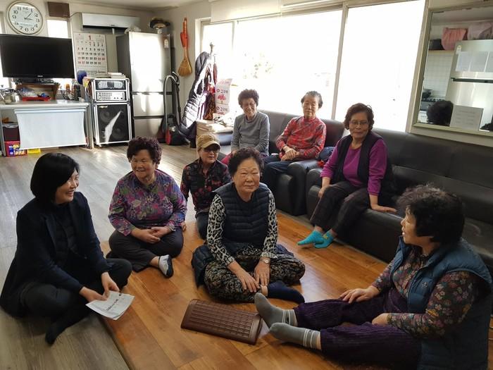 지난 13일 경기 수원시 장안구 정자2동으로 부임한 문명순 신임 동장이 부임 첫 행보로 경로당 12곳을 순회하며 경로당 운영현황과 애로사항을 청취했다. 사진은 문 동장이 노인들과 이야기를 나누고 있는 모습. (사진제공=장안구청)