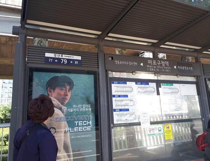 ▲ 마포구청역 인근 버스정류장에 설치된 도로명주소 기초번호판. (사진제공=마포구청) |