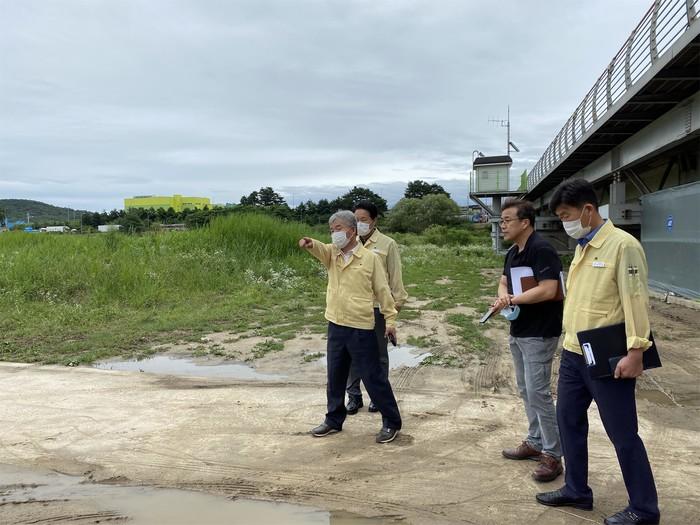 권금섭 경기 이천시 부시장은 지난 14일 여름 장마철을 맞아 자연재해에 선제적으로 대응하기 위해 집중호우 취약지역인 차량 침수우려지역 및 배수펌프장, 인명피해우려 저수지 현장을 둘러봤다. 사진은 권 부시장이 관계자들과 현장점검을 하고 있는 모습. (사진제공=이천시청)