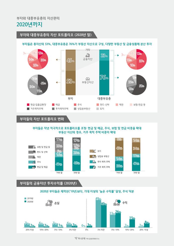 [시민일보 = 여영준 기자]하나은행 하나금융경영연구소는 우리나라 부자와 대중부유층을 대상으로 실시한 온라인 설문조사(2020년 12월)를 통해 '2021 Korean Wealth Report : 부자와 대중부유층의 자산관리 트렌드'를 발간했다고 8일 밝혔다.