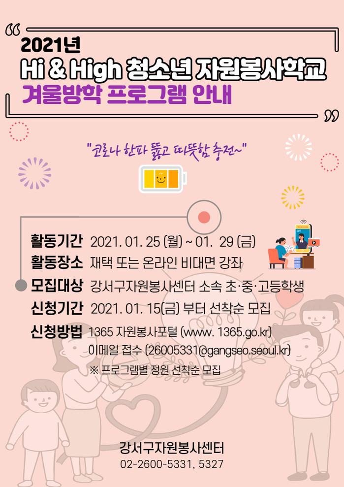 | ▲ 'Hi & High 청소년 자원봉사학교 겨울방학 프로그램 안내문. (사진제공=강서구청) |
