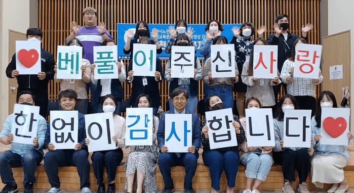 경기 포천시 노인복지관은 5월 가정의 달을 맞이해 복지관 이용 노인을 대상으로 카네이션 배지와 감사편지를 전달하는 ‘카네이션 이벤트’를 진행, 20명의 노인을 선정해 카네이션 배지를 달아주며 감사 인사를 건넸다. 사진은 직원들이 손팻말을 들고 감사 메시지를 전하는 모습. (사진제공=포천시청)