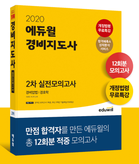1위에 오른 ‘2020 에듀윌 경비지도사 2차 실전모의고사’ 수험서는 9개년 기출 데이터를 분석해 최신 출제경향에 맞춘 적중 모의고사 12회분을 제공한다.