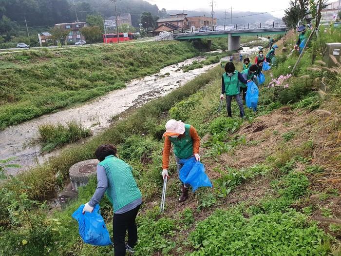 경기 양평군 지평면 새마을협의회가 최근 지평면내 주요 하천인 지평천 환경정비를 펼쳤다. 이날 새마을협의회원 30여명은 이 일대에 버려진 쓰레기를 수거했다. 사진은 회원들이 쓰레기를 수거하고 있는 모습. (사진제공=양평군청)