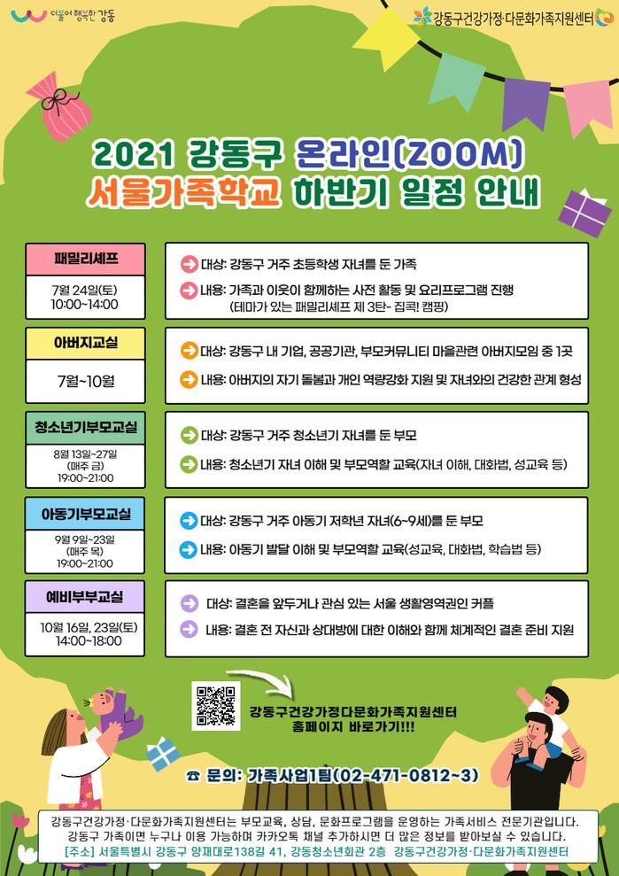 [시민일보 = 이대우 기자] 서울 강동구(구청장 이정훈) 건강가정·다문화지원센터가 운영중인 ‘서울가족학교’가 오는 7월부터 하반기 일정을 진행한다.