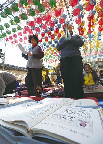 학년도 대학수학능력시험을 11 앞둔 3 서울 강북구 도선사에서 열린 수능 법회에서 수험생을 신도들이 자식과 손자 등의 고득점을 기원하며 기도를 올리고 있다.