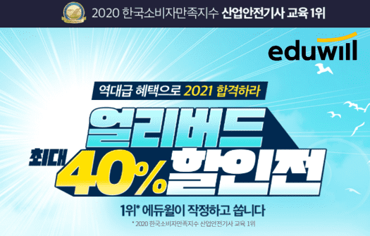[시민일보 = 여영준 기자] 종합교육기업 에듀윌(대표 박명규)이 산업안전기사 강의에 최대 40%의 할인 혜택을 적용하는 ‘얼리버드 할인전’을 28일까지 진행한다.