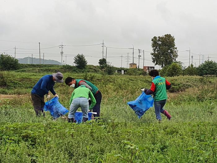 충남 아산시가 17일 읍·면·동 공무원, 유관기관 등이 참여한 가운데 ‘추석맞이 일제 대청소’를 펼쳤다. 이날 대청소는 주요 도로변과 곡교천·봉강천 등 하천 주변 쓰레기 수거 등이 중점적으로 진행됐다. 사진은 대청소 참여자들이 배방읍 일원에서 환경정비활동을 펼치고 있는 모습. (사진제공=아산시청)