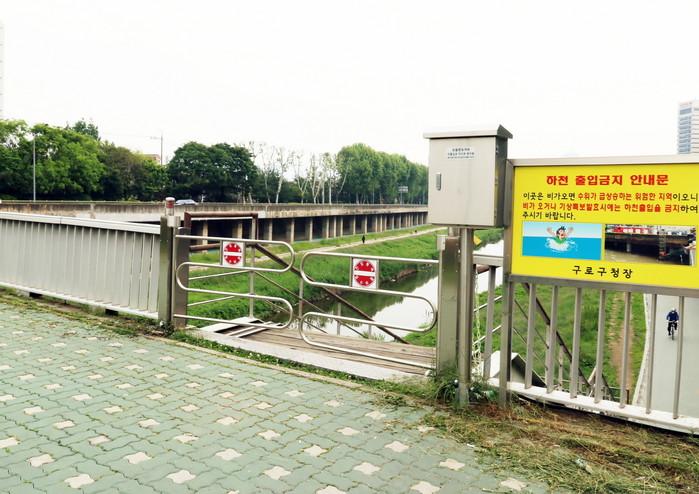 | ▲ 도림천에 설치된 진출입차단기. (사진제공=구로구청) |