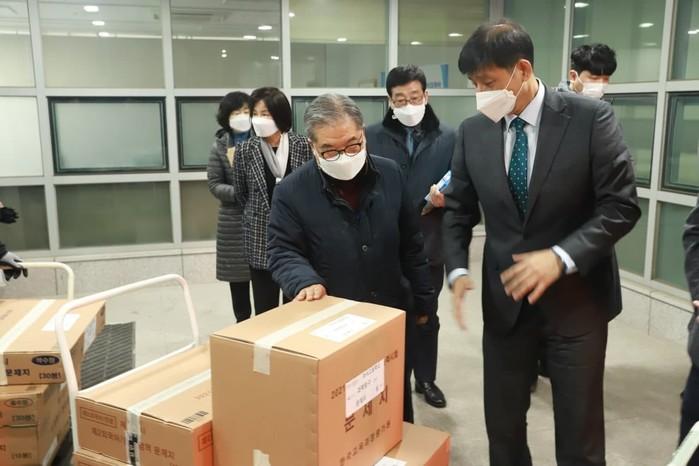 이재정 경기도교육감이 3일 구리남양주교육지원청을 찾아 2021학년도 대학수학능력시험 문답지가 지구내 시험장으로 이송되는 상황을 지켜보고 관계자들을 격려했다. 이어 의정부여자고등학교로 이동해 입실하는 수험생을 응원하고 경찰, 자원봉사자들에게 직접 감사의 마음을 전했다. (사진제공=경기도교육청)