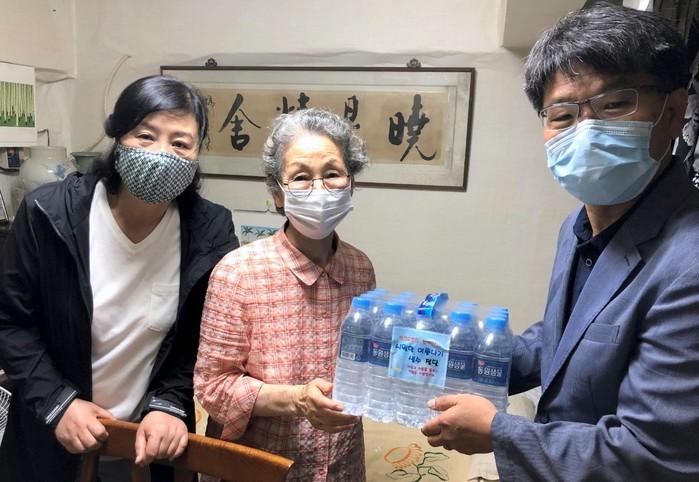 서울 서대문구 연희동 마봄협의체가 지난 27일과 28일 어려운 이웃들이 여름을 시원하게 보낼 수 있도록 지역내 홀몸노인과 장애인 등 취약계층 200가구를 방문해 생수 1박스씩(500ml 20개)을 전달했다. 사진은 생수 전달 후 기념촬영을 하는 모습. (사진제공=서대문구청)