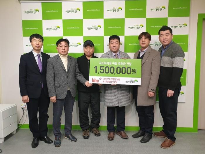 [시민일보 = 고수현 기자] bhc치킨 대전지역 가맹점과 대전충청사업부가 최근 저소득가정의 아동을 위해 초록우산재단 대전사업본부와 대전 대덕구 성우보육원에 후원금을 전달했다.