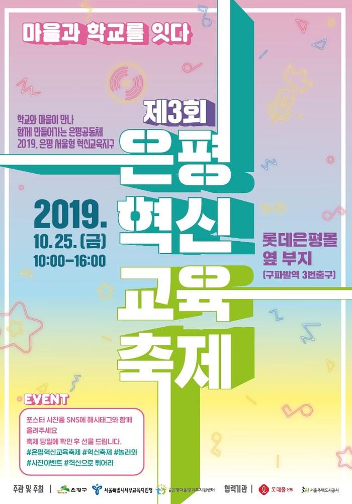 2017년 시작돼 올해 3회차를 맞이한 은평혁신교육축제는 은평구·서울특별시서부교육지원청·은평마을방과후지원센터가 함께 주관하고, 은평혁신교육지구 사업기관·지역네트워크·청소년동아리·학부모회·서울혁신파크 혁신가 등 다양한 교육 주체가 참여한다.
