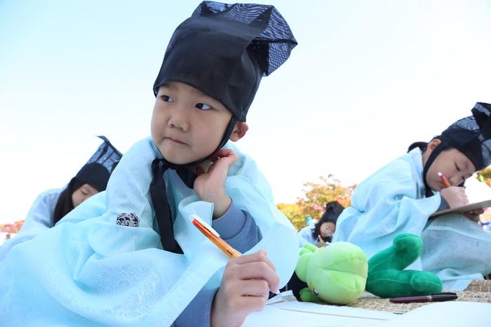 ▲ 지난해 열린 '과거시 경연대회'에 참가한 한 아이가 골똘히 생각하고 있는 모습. (사진제공=구로구청) |