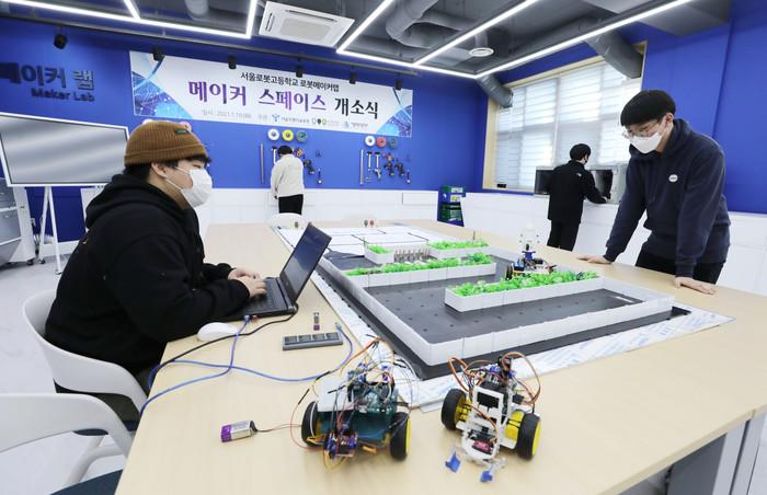 메이커스페이스는 청소년들이 3D프린터 등으로 직접 콘텐츠를 구상·제작하는 공유형 창작공간으로, 서울로봇고 거점센터는 지난해 5월 서울시교육청과의 업무협약을 토대로 조성됐다.
