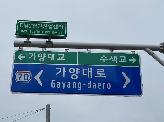 | ▲ 상암동 일대 가양대로 도로명 안내표지 정비 후. (사진제공=마포구청) |