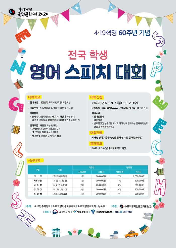 | ▲ 4.19혁명 60주년 기념 전국 학생 영어 스피치 대회 안내문. (사진제공=강북구청) |