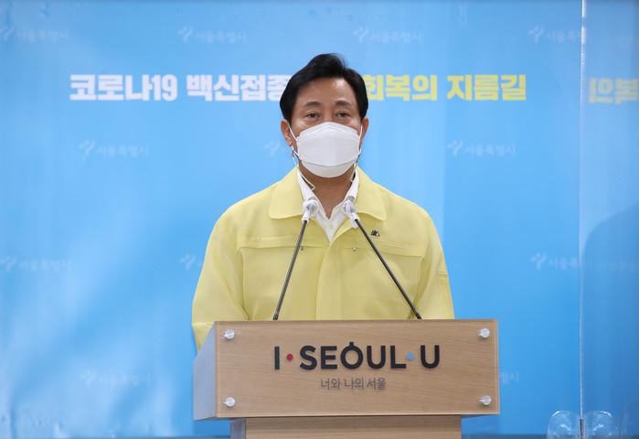 오세훈 서울시장이 10일 오후 서울시청에서 8.15 집회 관련 서울시 입장발표를 하고 있다.