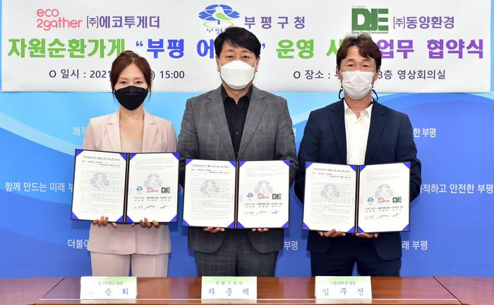 [인천=문찬식 기자] 인천 부평구는 최근 구청 영상회의실에서 (주)에코투게더, (주)동양환경과 '자원순환가게 부평 어울림 운영 사업' 업무협약을 체결했다고 2일 밝혔다.