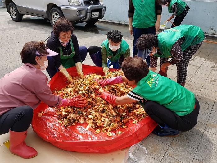경기 남양주시 와부읍 새마을부녀회는 최근 지역내 생활이 어려운 노인 40가구를 방문해 송편과 직접 만든 김치 및 밑반찬을 전달했다. 사진은 회원들이 김치를 만들고 있는 모습. (사진제공=남양주시청)