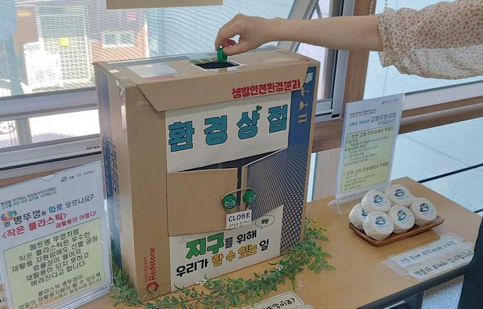 동 주민자치회 생활·안전 환경분과의 올해 자치계획인 '안전하고 아름다운 동네 만들기' 사업의 일환으로 추진되는 환경상점은 플라스틱 병뚜껑 15개를 모아오면 친환경 주방 설거지 비누로 교환해주는 행사다.