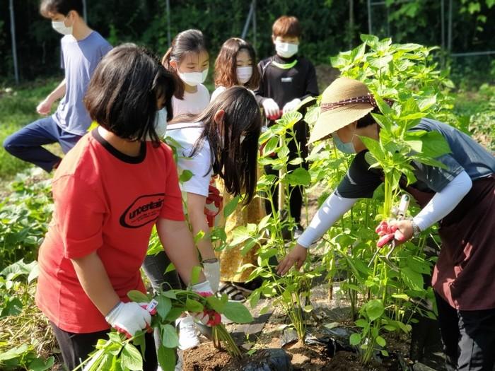 | ▲ ‘학교 치유텃밭’에서 학생들이 활동을 하고 있는 모습. (사진제공=광주시청) |