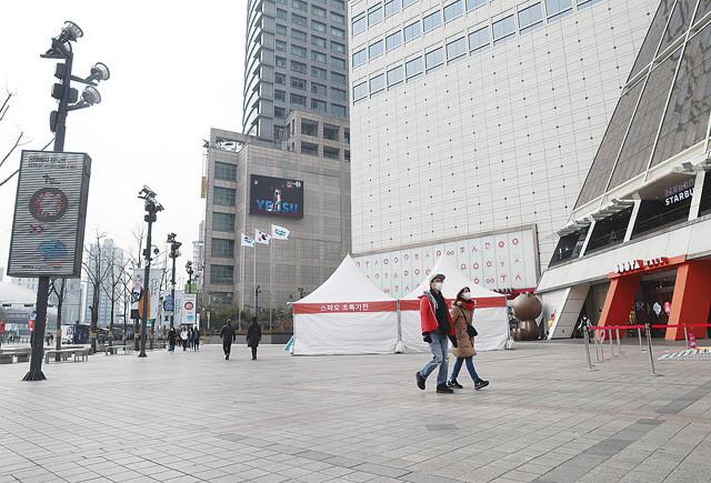 코로나비이러스 감염증인 '우한폐렴' 국내 확진자가 15명으로 늘어난 2 서울 동대문 대형 쇼핑몰 밀집지역이 주말 점심시간임에도 불구하고 한산한 모습을 보이고 있다.