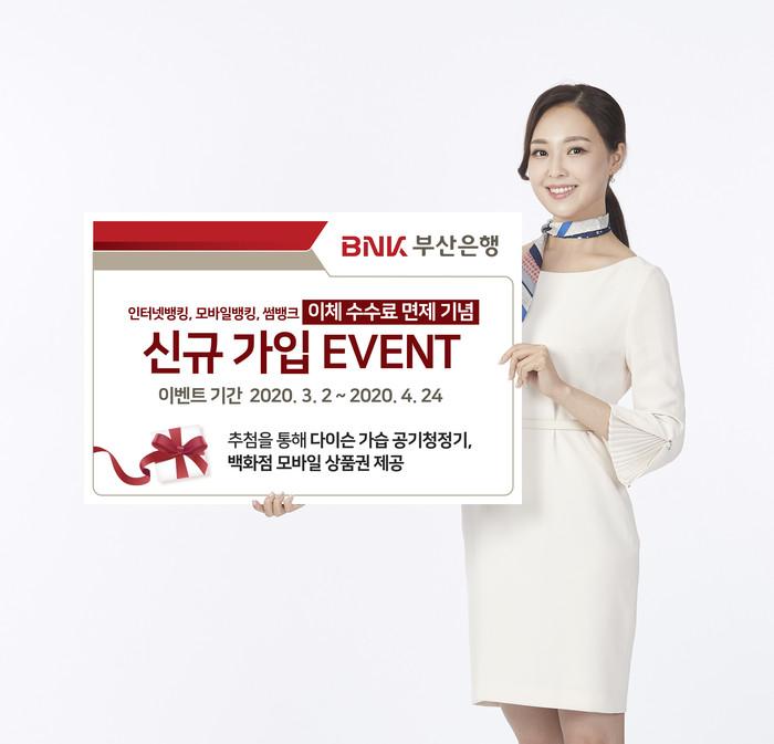 [시민일보 = 여영준 기자] BNK부산은행이 올해 초부터 실시중인 개인 인터넷·모바일뱅킹 이체수수료 면제를 기념해 신규 가입 대고객 이벤트를 오는 4월24일까지 실시한다고 2일 밝혔다.