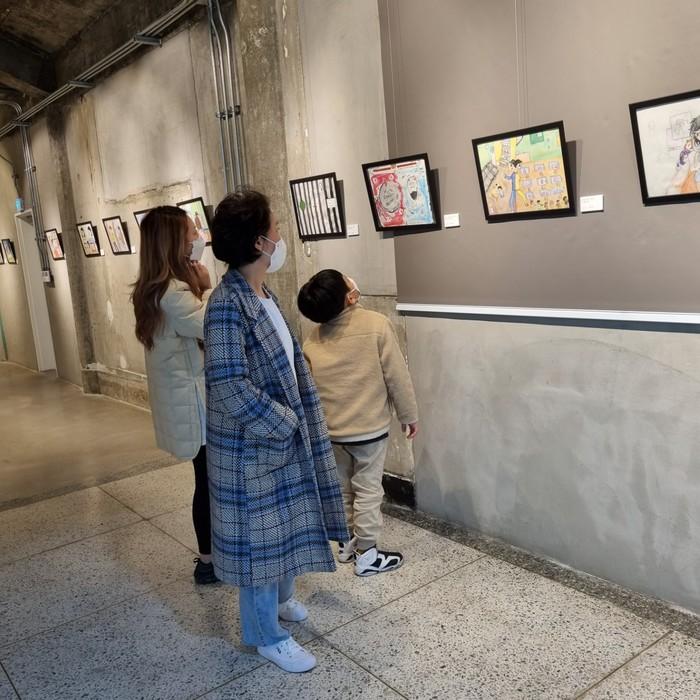 전시관을 찾은 어린이와 학부모들은 전시된 작품 옆에서 사진도 찍고 코로나로 변화된 일상을 나누며 포스트 코로나에 대해 이야기하는 시간도 가졌다.