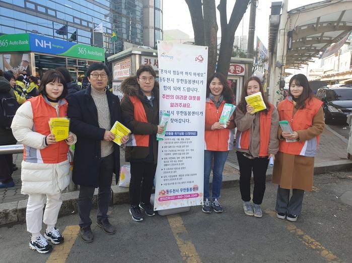경기 동두천시 무한돌봄센터는 최근 지역내 전통시장을 방문해 경제적·정신적으로 도움이 필요한 위기가정을 발굴하기 위한 '찾아가는 무한돌봄센터'를 운영했다. 사진은 시장을 방문한 관계자들이 기념촬영을 하는 모습. (사진제공=동두천시청)
