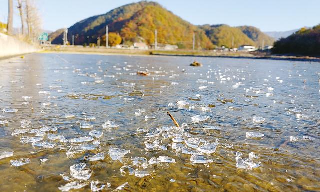 올가을 들어 가장 추운 날씨를 보인 지난 24일 오전 중동부 전선 최전방지역인 강원 양구의 한 들판에 얼음이 얼어 있다.