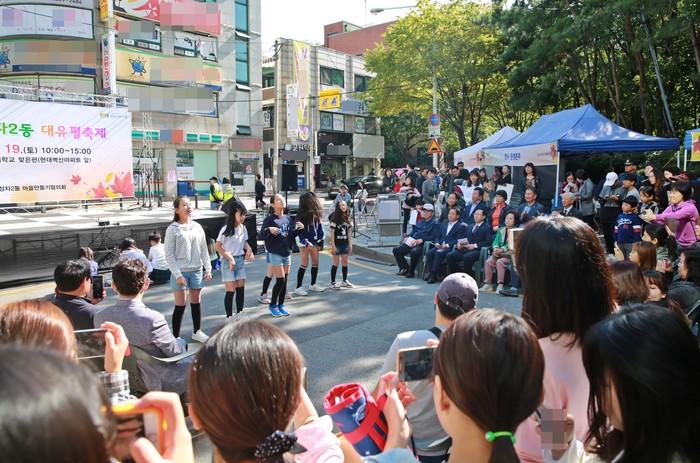 경기 수원시 장안구 정자2동 마을만들기협의회는 지난 19일 지역 주민들과 함께하는 정자2동 대유평 축제를 성황리에 개최했다. 사진은 축제에 참석한 학생들이 댄스 공연은 선보이는 모습. (사진제공=장안구청)